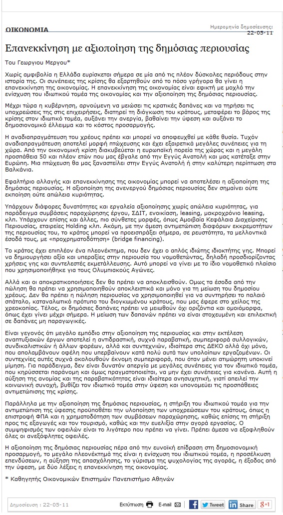| Επανεκκίνηση με αξιοποίηση της δημόσιας περιουσίας | kathimerini.gr |  |