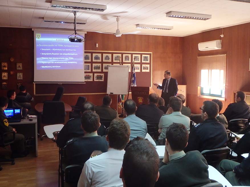 Την Δευτέρα 17 Μαρτίου 2014, στα πλαίσια της ενημέρωσης των στελεχών του Στρατού, αναφορικά με το έργο και τους στόχους του Ταμείου Εθνικής Άμυνας (ΤΕΘΑ), πραγματοποιήθηκε επίσκεψη – διάλεξη του Διευθυντού του Ταμείου Υπτγου Σταθιά Γεωργίου συνοδευομένου από αρμόδιους επιτελείς, στη Σχολή Τεχνικών Έργων Αξιωματικών Μηχανικού (ΣΤΕΑΜΧ).