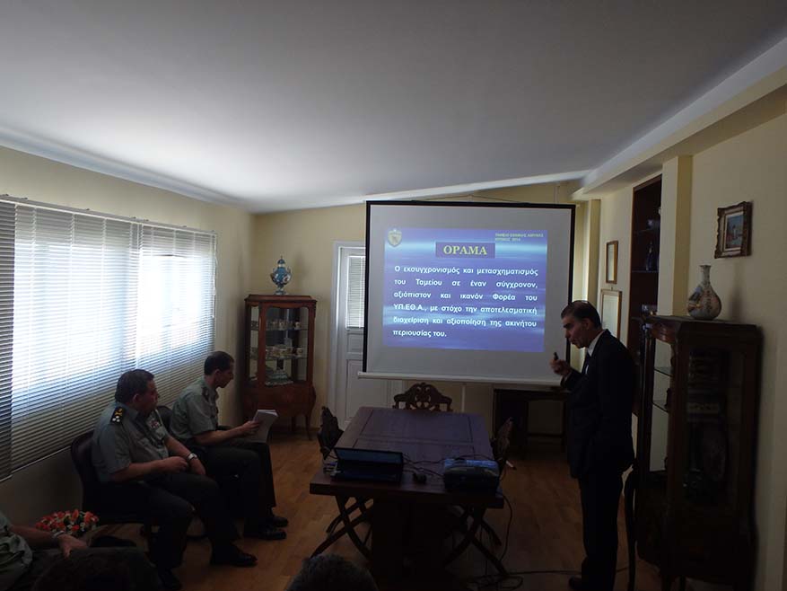 Tην Πέμπτη 12 Ιουνίου 2014, ο Α’ Υπαρχηγός του Γενικού Επιτελείου Στρατού, Αντιστράτηγος κος Νικόλαος Δεβετζής επισκέφθηκε το Ταμείο Εθνικής Άμυνας (ΤΕΘΑ), στο οποίο ενημερώθηκε αναφορικά με το Όραμα,  την Αποστολή, την Στρατηγική και τους Στόχους (ΑΝΣΚ) που έχει θέσει το ΤΕΘΑ, ως αρμόδιος Φορέας στον χώρο του Γενικού Επιτελείου και κατ’ επέκταση του ΥΠΕΘΑ, επί θεμάτων  διαχείρισης – ορθολογιστικής αξιοποίησης της εν γένει ακινήτου περιουσίας του.